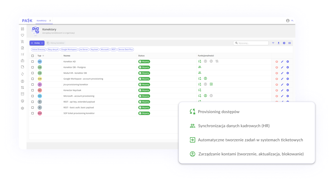 Łączymy się z narzędziami, które są kluczowe dla Twojej organizacji – od pakietów biurowych po systemy HR i ticketowe. Gotowe integracje pozwalają zautomatyzować zarządzanie dostępami bez angażowania zasobów IT.
