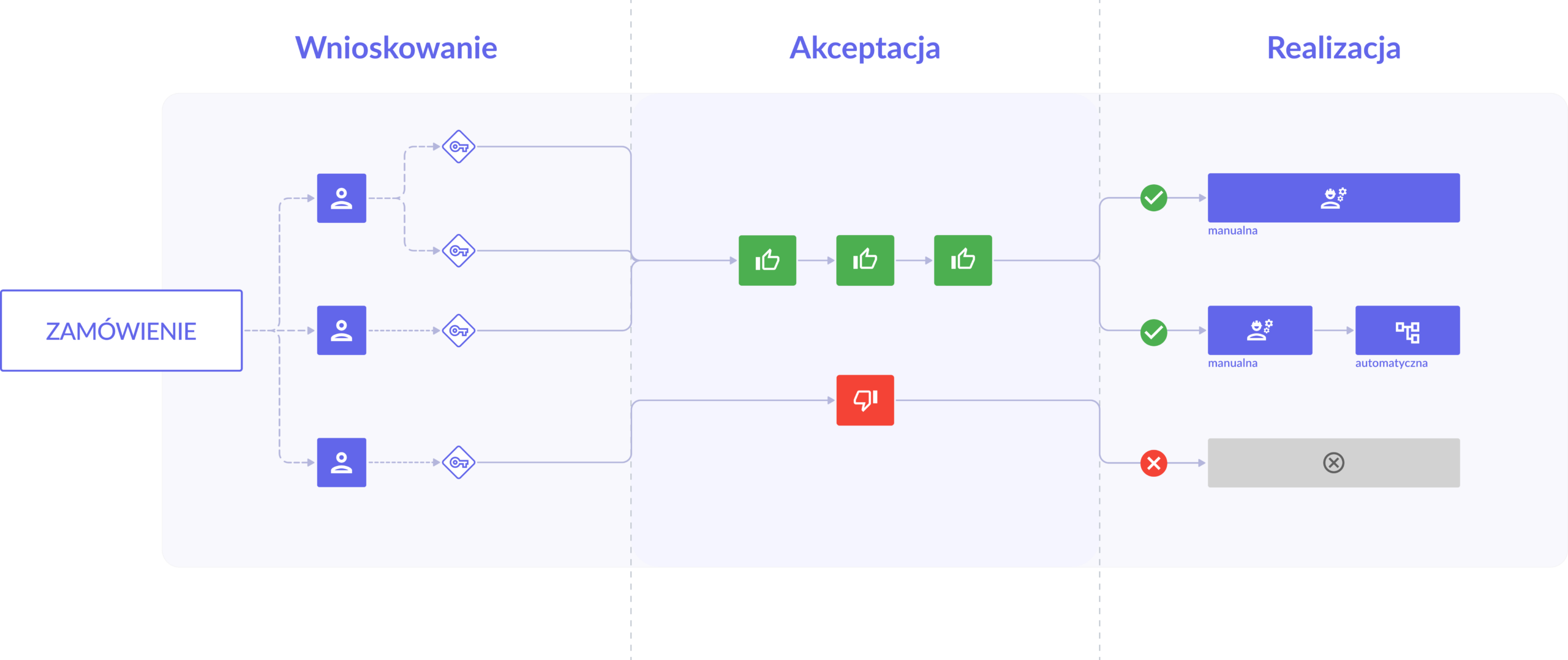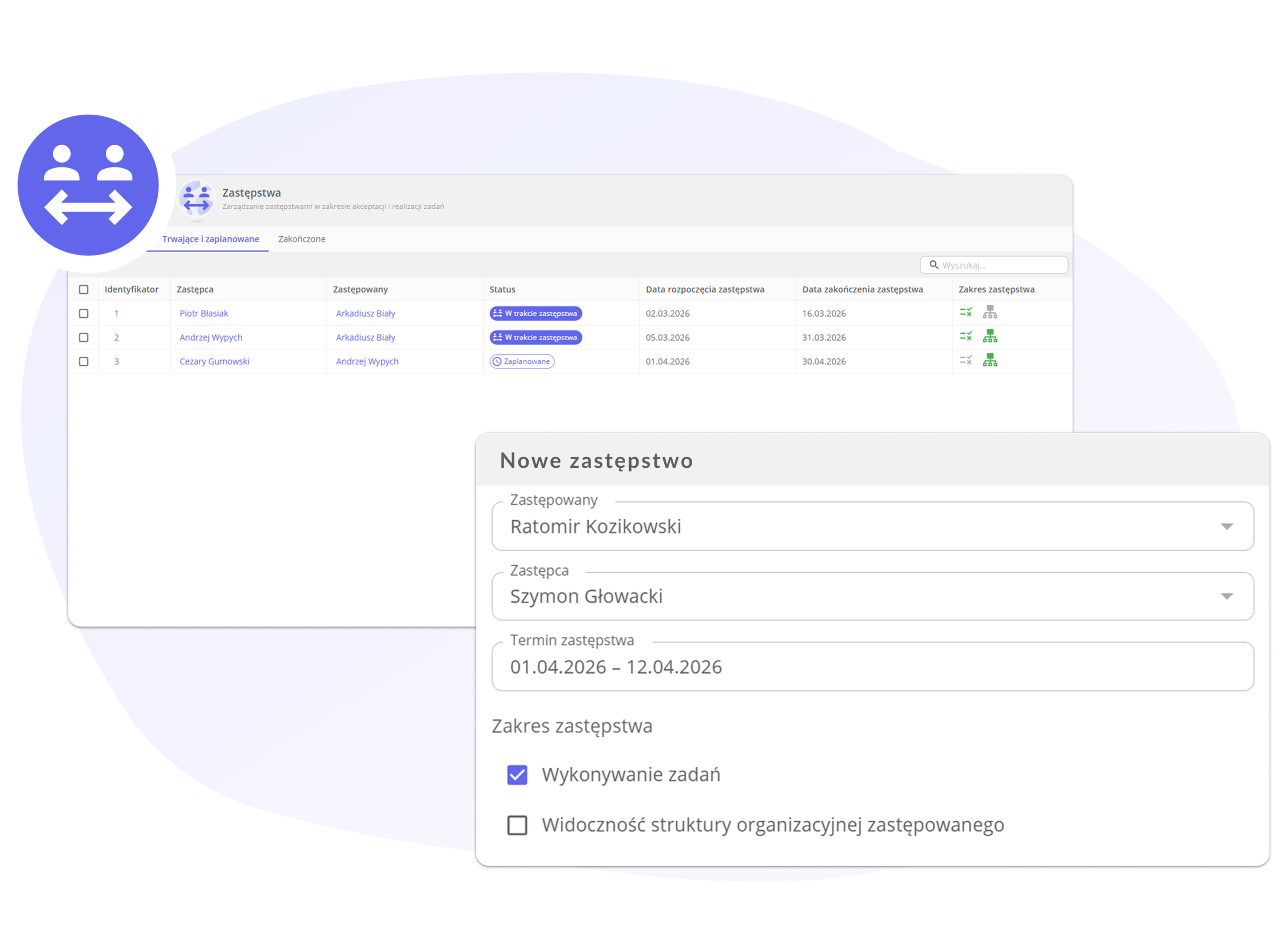 Zachowaj ciągłość akceptacji nawet podczas nieobecności kluczowych osób. Wnioski nie blokują się, decyzje są podejmowane na czas, a każda akceptacja jest jasno zapisana - z informacją kto, kiedy i dlaczego ją wykonał.